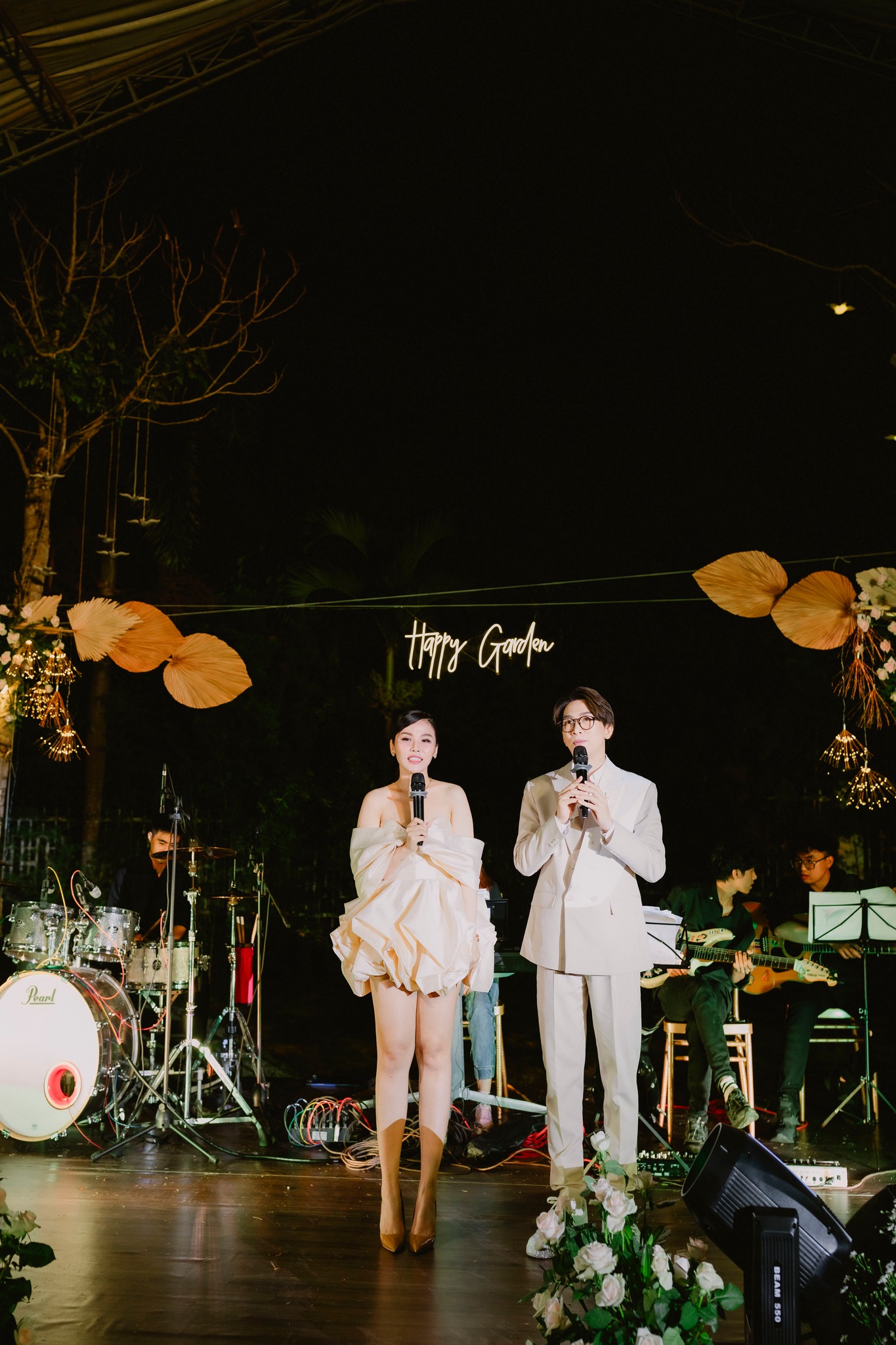 Happy Garden sở hữu khu vực tổ chức tiệc cưới rộng lớn, vừa có không gian sang trọng trong nhà vừa có khu vực ngoài trời lung linh dưới ánh đèn. Được bao bọc bởi cây xanh và những bóng cây lớn, không gian tại đây không chỉ tạo cảm giác thoáng đãng, dễ chịu mà còn mang đến sự gần gũi với thiên nhiên, góp phần làm cho không khí buổi tiệc thêm phần ấm áp và đầy cảm xúc.